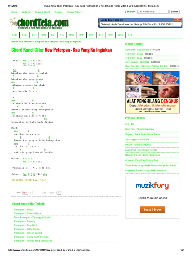 Kunci Gitar New Peterpan Kau Yang Ku Inginkan Chord Dasar Kunci