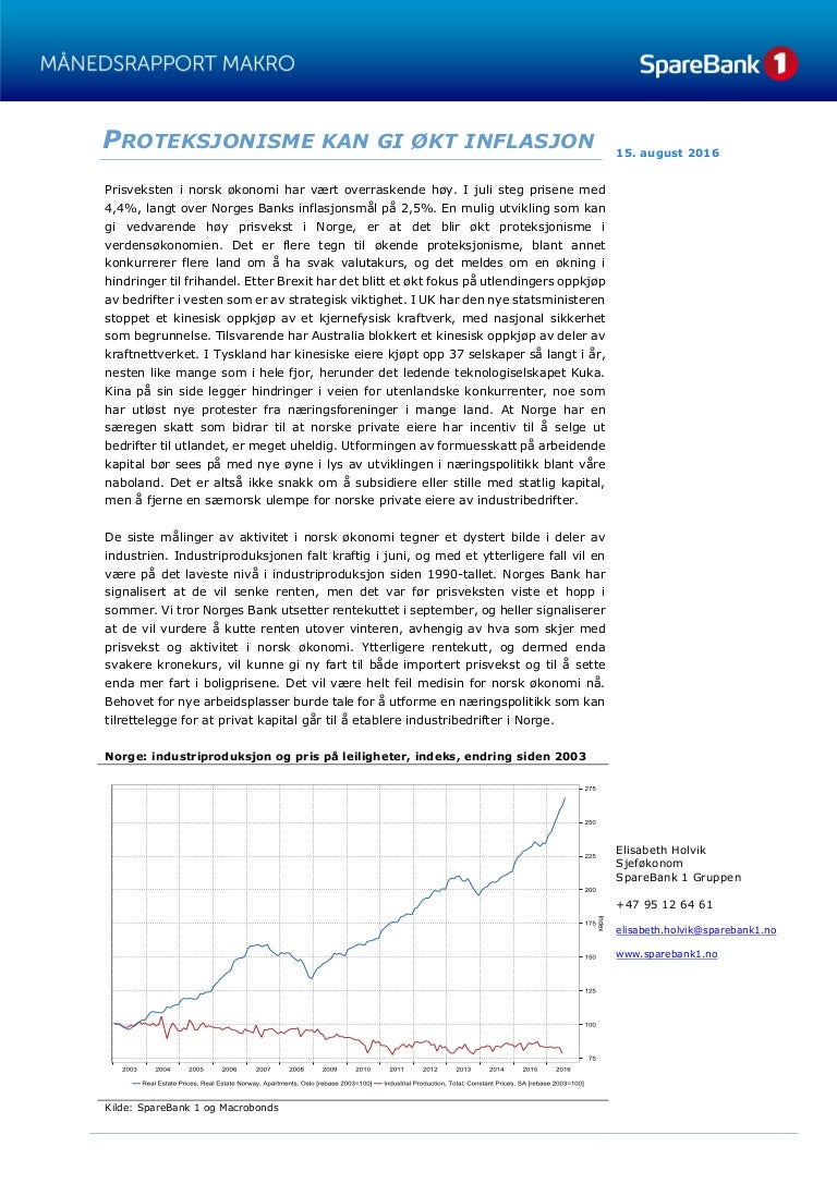Sparebank1 Makrorapport Aug 2016 Elisabeth Holvik